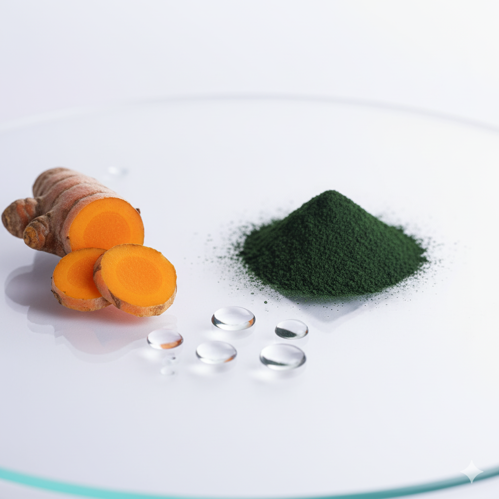 Issue de la découverte du Dr. Fresu, notre noyau breveté est la clé de la biodisponibilité. La Spiruline VITA ALGAE protège la curcumine de la destruction gastrique et assure un plateau d'efficacité stable pendant 24 heures. C'est notre source la plus puissante de soutien articulaire continu.